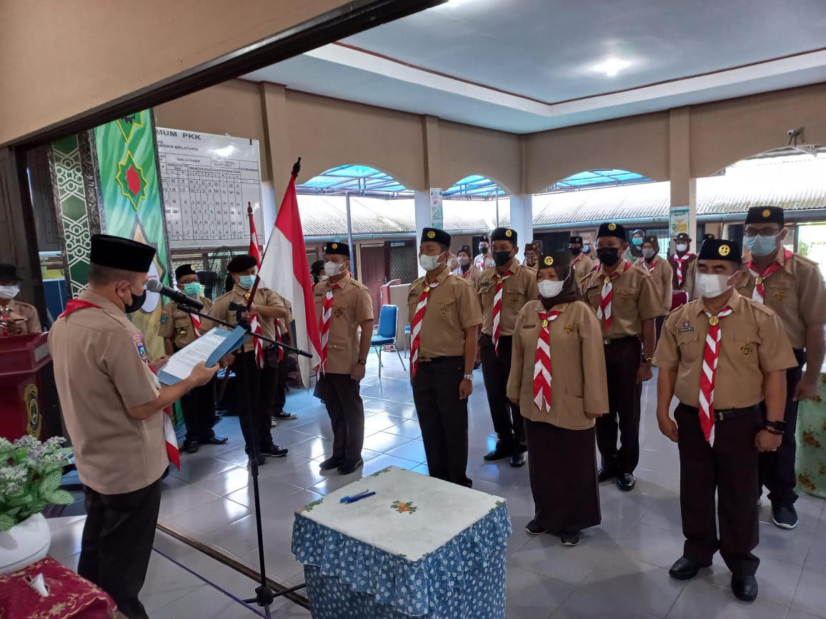 Pangkalpinang, Ketua Kwartir Cabang Gerakan Pramuka Kota Pangkalpinang yang di wakili oleh Kak Eddy Supriadi, S.Pd.,M.Pd hari ini 28 Juni 2021 melantik Ketua Majelis Pembimbing dan Pengurus serta Ketua Kwartir Ranting Gerunggang dan Pengurus Masa Bakti 2020 – 2023. Pelantikan dilakukan secara offline bertempat di Aula terbuka Kantor Camat Kecamatan Gerunggang dengan mengikuti standart protokol Kesehatan yang sangat ketat, hal ini di lakukan guna memutuskan mata rantai penyebaran Covid-19.